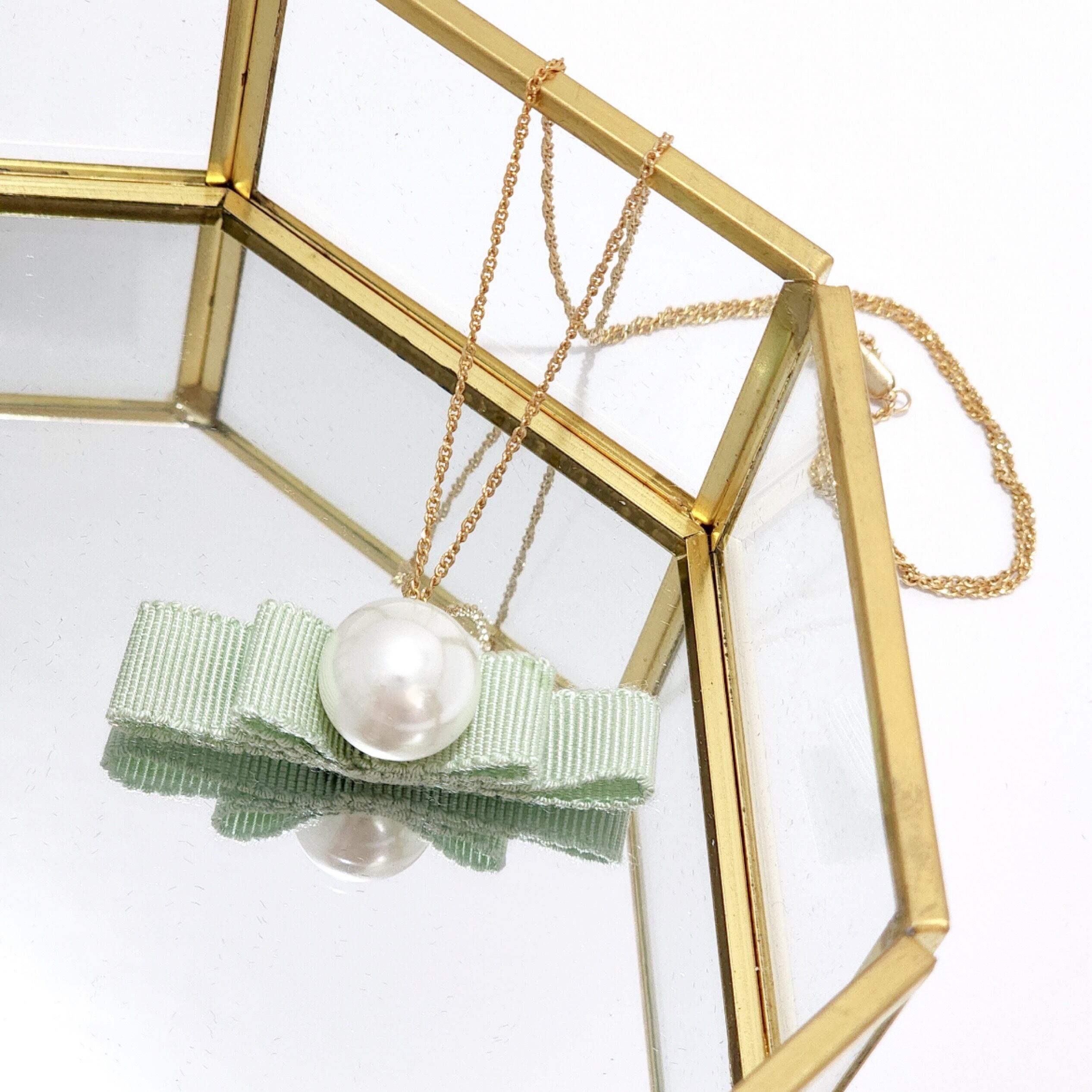 あなたのきれいな胸元に、優しい樹脂パールとリボンがかがやくことでしょう。