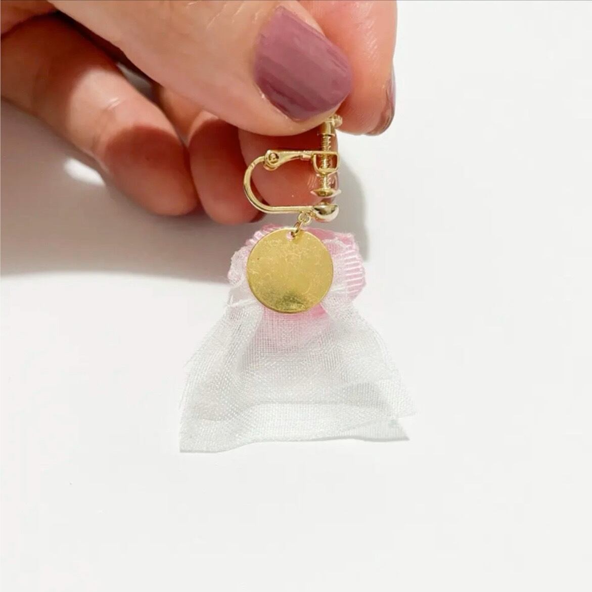 モチーフが繊細なこともあり、ダイレクトに触らずにつけ外しができるよう、ネジバネかつ開閉式の金具を使い、金具とモチーフも間接的に繋いでいます