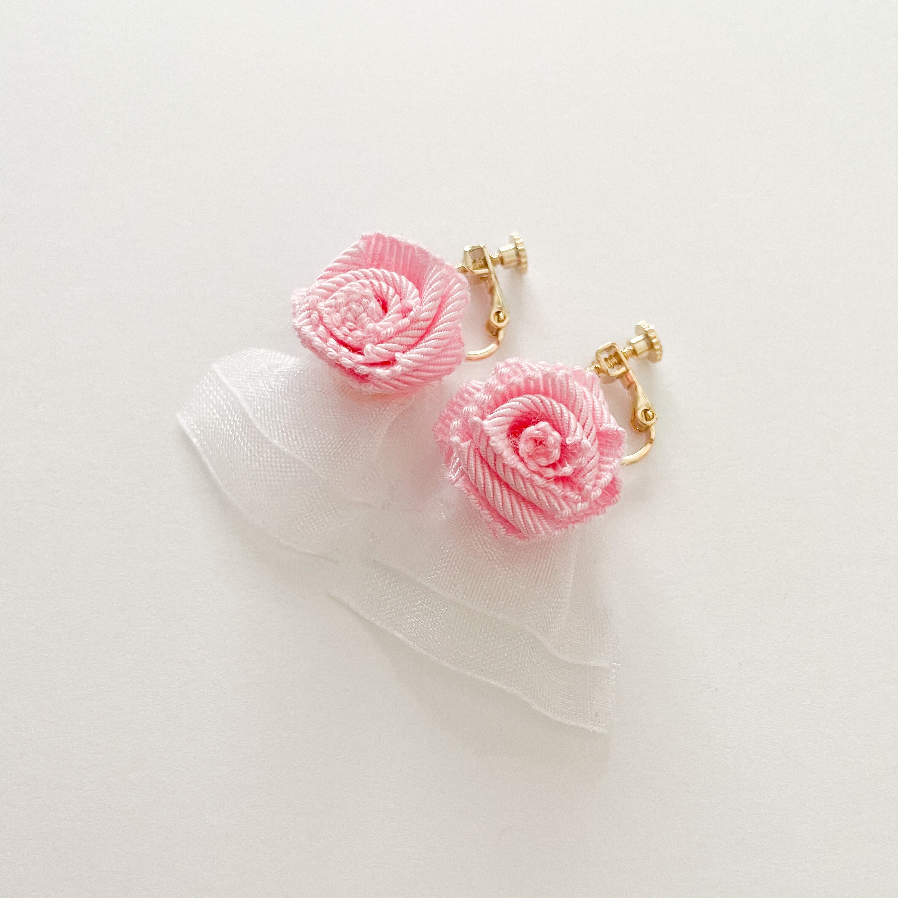 パステルカラーのローズを主役に、クリアカラーのオーガンジーフリルを添えました。