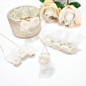 ホワイトのローズを主役に、クリアカラーのオーガンジーフリルを添えました。