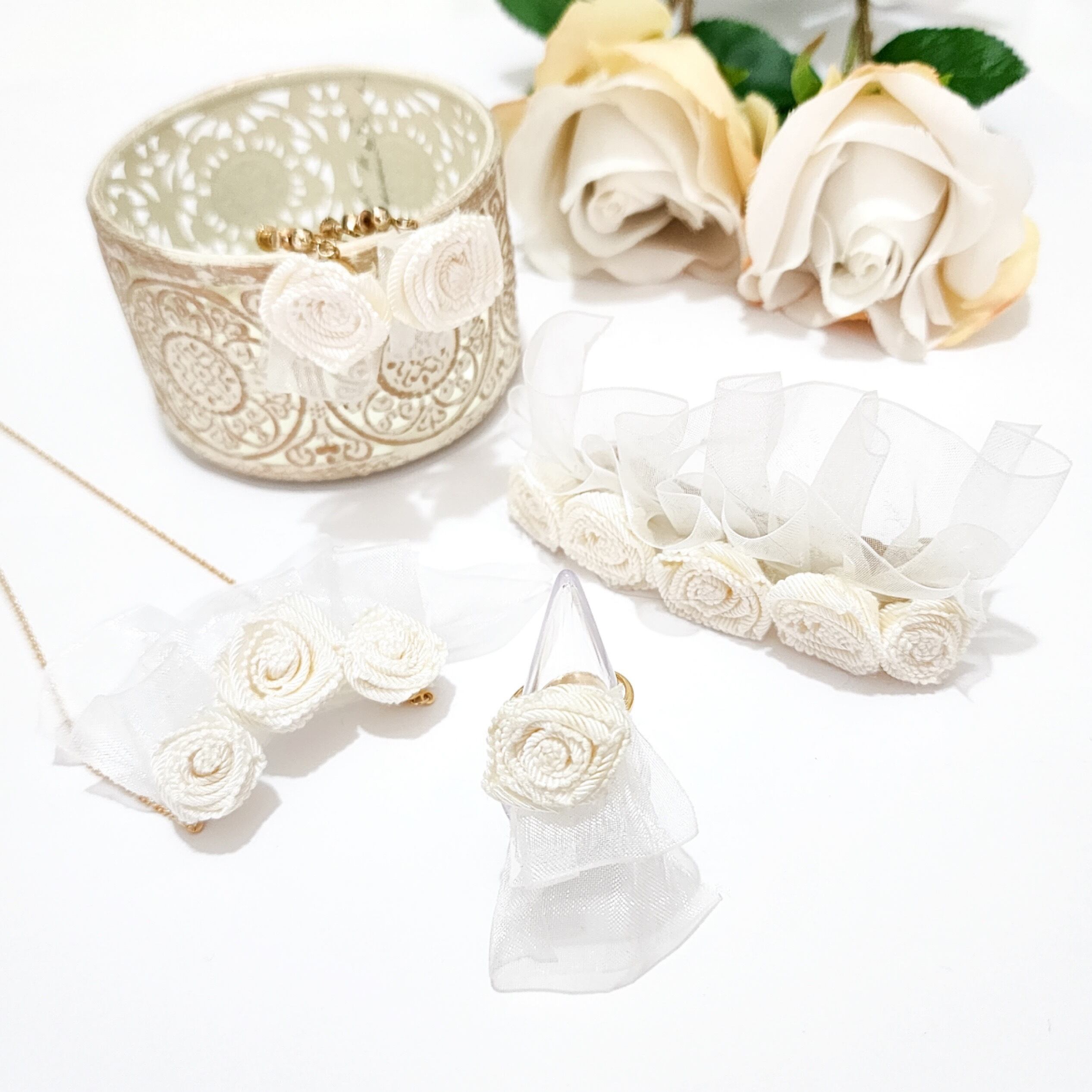 #Hitomiiy #BrightRoseFrill #ホワイト #バラ #ローズ #母の日 #フリル #minneの母の日 #イヤリング #白