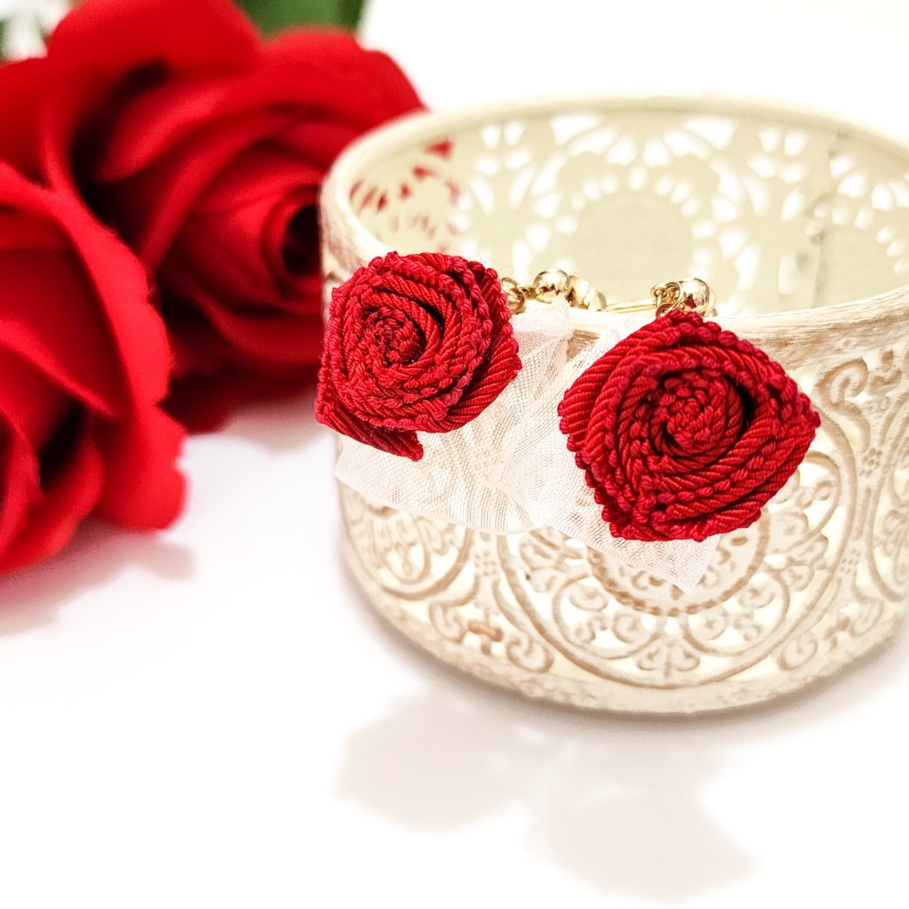 #Hitomiiy #RedRoseFrill #レッド #バラ #ローズ #母の日 #フリル #minneの母の日 #イヤリング #赤