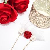 大きめローズで存在感がありますが、レッドとホワイトのカラーリングで強すぎない印象を残します。