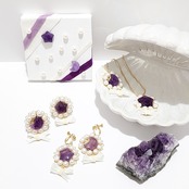 吸い寄せられるようなパープル色のアメシスト、魅了される星と月のモチーフ、コロンとしたキュートなパール…